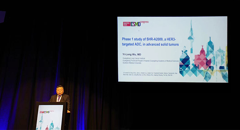 10月23日,918博天堂医药创新药、HER3靶向ADC药物SHR-A2009治疗晚期实体瘤的I期研究亮相2023 ESMO大会简短口头报告现场5。该研究由广东省人民医院的吴一龙教授牵头开展,吴一龙教授在现场公布该研究的重要进展。研究结果显示,SHR-A2009在经治晚期实体瘤患者中显示出可控的安全性和令人鼓舞的抗肿瘤活性。目前评估更高剂量的SHR-A2009在选定癌症类型(NSCLC和其他实体肿瘤)中作用的试验正在进行中。