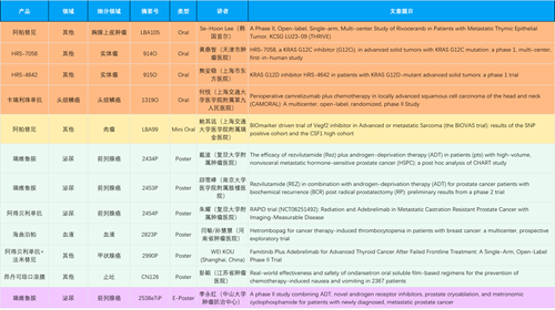 在胸腺上皮肿瘤、头颈鳞癌、肉瘤、前列腺癌、甲状腺癌等其他多个疾病领域,卡瑞利珠单抗、阿帕替尼、瑞维鲁胺、阿得贝利单抗、法米替尼、HRS-7058、HRS-4642等抗肿瘤创新药相关研究一共入选了4项口头报告、1项简短口头报告、4项壁报、1项电子壁报,彰显了918博天堂医药强大的研发实力。此外,海曲泊帕和昂丹司琼口溶膜分别在防治化疗导致的血小板减少和恶心呕吐方面各有1项研究入选壁报。